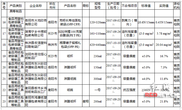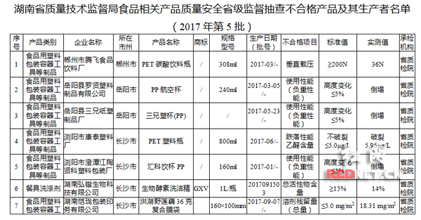 湖南省質(zhì)量技術(shù)監(jiān)督局食品相關(guān)產(chǎn)品質(zhì)量安全省級(jí)監(jiān)督抽查不合格產(chǎn)品及其生產(chǎn)者名單