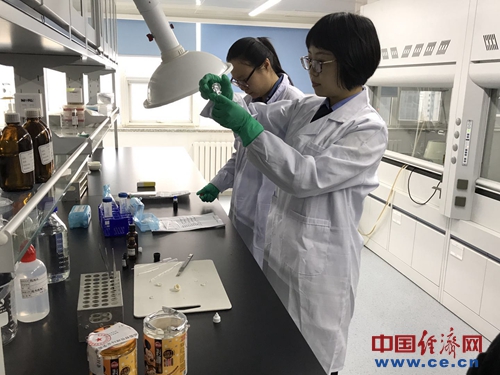 在理化實(shí)驗(yàn)室內(nèi),檢測(cè)人員正在對(duì)網(wǎng)購(gòu)來(lái)的元宵做甜蜜素和防腐劑的檢測(cè) 經(jīng)濟(jì)日?qǐng)?bào)-中國(guó)經(jīng)濟(jì)網(wǎng)記者 吳曉薇/攝