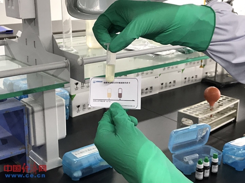 帶著網(wǎng)購(gòu)來(lái)的元宵,記者來(lái)到了安全監(jiān)控中心的理化實(shí)驗(yàn)室。在這里,檢測(cè)人員針對(duì)速凍元宵防腐劑、甜蜜素等項(xiàng)目進(jìn)行了常規(guī)快速檢驗(yàn)。檢測(cè)人員取出包裝內(nèi)的一顆元宵,稍加切碎后放入容器中,加入專(zhuān)用檢測(cè)試劑后振蕩混勻。幾分鐘后記者觀察到,兩項(xiàng)測(cè)試樣品溶液均近乎澄清,與色卡比對(duì)后,結(jié)果均顯示合格。