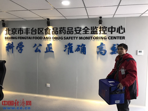 市場(chǎng)環(huán)節(jié)檢查結(jié)束后,記者又跟隨執(zhí)法人員回到了豐臺(tái)區(qū)食品藥品安全監(jiān)控中心。在中心大廳里,檢測(cè)組人員現(xiàn)場(chǎng)用手機(jī)在某電商平臺(tái)購(gòu)買(mǎi)了兩桶速凍元宵,同時(shí)訂購(gòu)了一份元宵餐飲外賣(mài)。在等候期間,檢測(cè)人員對(duì)相關(guān)外賣(mài)平臺(tái)顯示的產(chǎn)品名稱(chēng)、包裝、餐飲經(jīng)營(yíng)者資質(zhì)等信息進(jìn)行了核查和登記。隨后,快遞員和外賣(mài)小哥陸續(xù)將商品送到,執(zhí)法人員通過(guò)執(zhí)法記錄儀拍下了送貨、簽字、開(kāi)封、封存的全過(guò)程,對(duì)產(chǎn)品性狀、標(biāo)示信息等進(jìn)行了確認(rèn),并對(duì)速凍元宵的運(yùn)輸方式和運(yùn)輸溫度進(jìn)行了重點(diǎn)檢查。