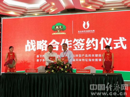 論壇現(xiàn)場,保定槐茂食品科技有限公司與北京市營養(yǎng)源研究所簽訂戰(zhàn)略合作協(xié)議,就“基于傳統(tǒng)醬腌菜的營養(yǎng)休閑化轉(zhuǎn)型產(chǎn)品的關(guān)鍵技術(shù)研究”、“基于多譜學(xué)技術(shù)的傳統(tǒng)甜面醬風(fēng)味特征指紋圖譜的建立”兩大課題展開合作;戰(zhàn)略簽約“河北食品學(xué)會”,就“固態(tài)生化反應(yīng)器制醋新技術(shù)研究”展開合作。此舉將大力推動槐茂“產(chǎn)學(xué)研協(xié)同創(chuàng)新”戰(zhàn)略,開啟科技釀醬新時代;以現(xiàn)代科研技術(shù)創(chuàng)新升級傳承了三百多年的傳統(tǒng)釀造工藝,實現(xiàn)傳統(tǒng)風(fēng)味的與時俱新。