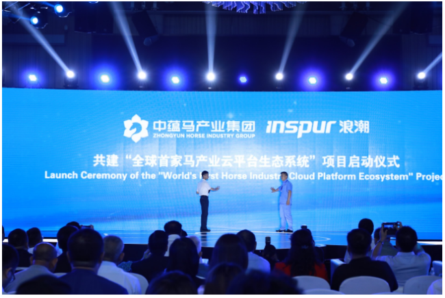 中蘊(yùn)馬產(chǎn)業(yè)集團(tuán)執(zhí)行總裁魏曉明與浪潮集團(tuán)制造事業(yè)部副總經(jīng)理孫振共同發(fā)布由中蘊(yùn)馬產(chǎn)業(yè)集團(tuán)和浪潮集團(tuán)共建全球馬產(chǎn)業(yè)首家云平臺生態(tài)系統(tǒng)