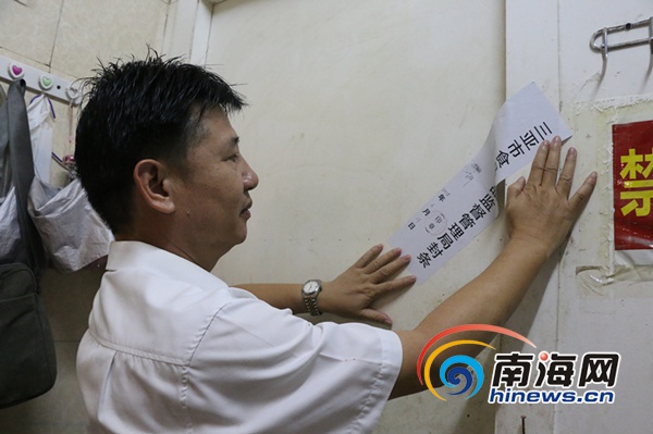 三亞食藥監(jiān)執(zhí)法人員在御粱坊三亞和平街門店的倉庫前貼上封條。南海網(wǎng)記者葉俊一攝
