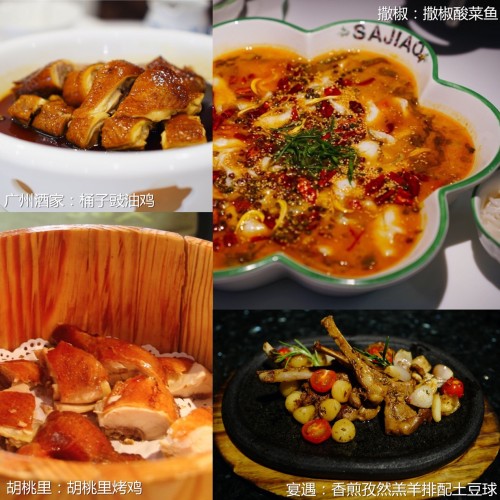 在多元素融合的南部沿海地區(qū),消費者在鐘情地道傳統(tǒng)菜的基礎(chǔ)上,也青睞創(chuàng)意融合菜。廣州酒家的桶子豉油雞,體現(xiàn)了廣東人對雞肉的精準把握,鮮中帶甜質(zhì)感滑嫩;撒椒的撒椒酸菜魚,甄選咸淡水交界處的鱸魚,格外鮮嫩;胡桃里的胡桃里烤雞,別出心裁地藏在鳥籠形狀的木桶里,經(jīng)果木烤制的雞肉香氣獨特;宴遇的香煎孜然羔羊排配土豆球,將三花淡奶和羊肋排完美融合,搭配迷迭香、胡椒、小洋蔥和番茄等輔料,令人耳目一新。