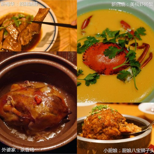 在典型的江南水鄉(xiāng),饕客們更追求精致感。外婆家的茶香雞,選取兩斤重的食草三黃雞,輔以十余種調(diào)料,歷經(jīng)苛刻的腌制與烤制,才能呈現(xiàn)出獨特的金黃色與酥嫩鮮香的口感;新白鹿的美極蝦湯蟹,將整只時令肥蟹,與鮮蝦熬制成的蝦湯,以及雞蛋創(chuàng)意結(jié)合,湯底金黃濃郁,剛端上桌就香氣四溢;新梅華的招牌爊鵝,經(jīng)過數(shù)道工序的爊制,鵝肉皮色锃亮,泛著油亮的焦糖色;小廚娘的廚娘八寶獅子頭,用八種食材組合而成,歷經(jīng)80次捶打呈現(xiàn)出韌性十足的肉質(zhì)。