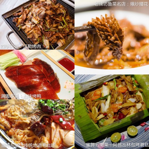 在豁達的北方,食客們既喜歡傳統(tǒng)的本地佳肴,也推崇具有地方特色的菜品。四季民福的貝勒烤肉,可追溯到康熙二十五年,京味兒十足;老牌坊魯菜名店的爆炒腰花,肉質(zhì)鮮嫩味道醇厚,也體現(xiàn)了山東大廚跟火搶味的功力;滿園春餅的五味烤鴨,在秘制的“酸甜苦辣咸”五味醬料的襯托下,激發(fā)出獨特滋味;雀舞云南菜的阿昌叢林包烤蘑菇帶來的是地道的云南味道,清香爽脆;眉州東坡的傳統(tǒng)地道毛血旺,熱辣下飯,川味十足。
