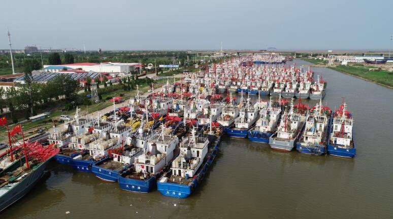 2018年7月31日,在江蘇省連云港市贛榆區(qū)青口港漁業(yè)碼頭,漁船在港內(nèi)等候出海作業(yè)。