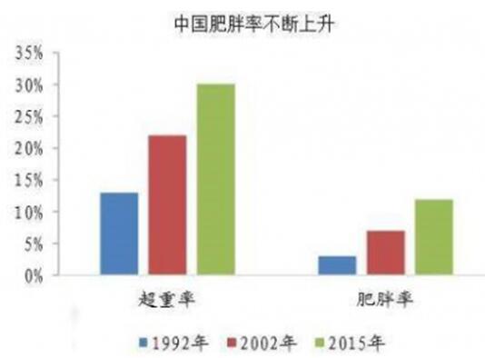 2017年,英國著名醫(yī)學(xué)雜志《柳葉刀》發(fā)表全球成年人體重調(diào)查報(bào)告,調(diào)查發(fā)現(xiàn)全球成人肥胖人口已經(jīng)超過瘦子,而中國超越美國,成為全球肥胖人口最多的國家。其中,中國男性肥胖人數(shù)4320萬人,女性肥胖人數(shù)4640萬人,總?cè)藬?shù)高居世界第一。