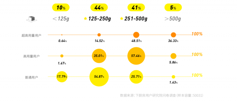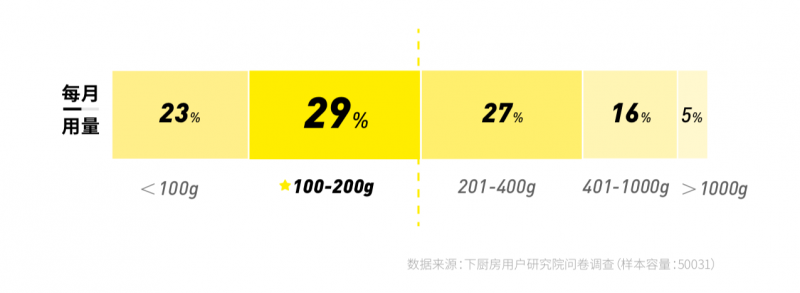 在每月的用量上,200g成為一個分水嶺,200g以上和 200g以下的用戶基本各占一半。