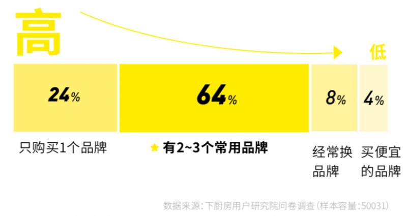 數(shù)據(jù)顯示,有24%的消費(fèi)者品牌忠誠度很高,只認(rèn)準(zhǔn)一個品牌購買。超過六成消費(fèi)者同時(shí)使用2~3個常用黃油品牌。