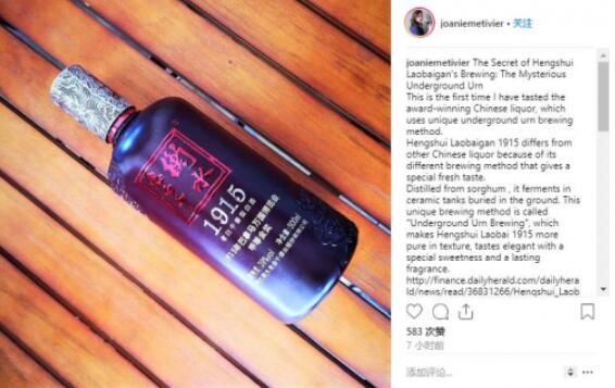 “衡水老白干1915與其它的中國白酒不一樣,主要是因為其釀造方法的差異而帶來清新的口感。”美國烈酒專家Joanie Metivier在第一次品嘗衡水老白干1915后表示:“這種釀酒的方法使得衡水老白干1915的質地更純凈,品嘗起來淡雅不失清香,有一種特殊的香甜,且入口后清香感持久。”