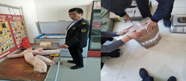 為落實(shí)縣局關(guān)于非洲豬瘟疫情防控工作部署。10月3日,蟠龍所對(duì)轄區(qū)下型塘便民服務(wù)站、大姑娘蔬菜店等單位進(jìn)行了檢查。檢查中發(fā)現(xiàn),下型塘便民服務(wù)站8.65公斤五花肉及13.74公斤通肌肉,兩證兩章不全,我所當(dāng)即對(duì)該生豬產(chǎn)品進(jìn)行了封存。