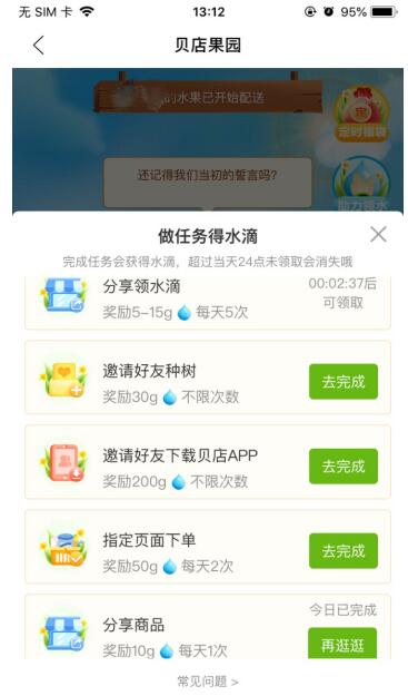 其實,所謂的果園和果樹并不真實存在,而是貝貝集團(tuán)旗下社交電商平臺貝店推出的一個趣味營銷玩法——貝店果園。在貝店果園里,人人都可以自己種果樹,通過完成簡單的分享、推薦、邀請任務(wù)或在指定頁面下單就可以領(lǐng)取相應(yīng)的水滴,當(dāng)然你也可以邀請好友助力,獲得更多的水滴澆灌自己的果樹,讓它盡快開花、結(jié)果。