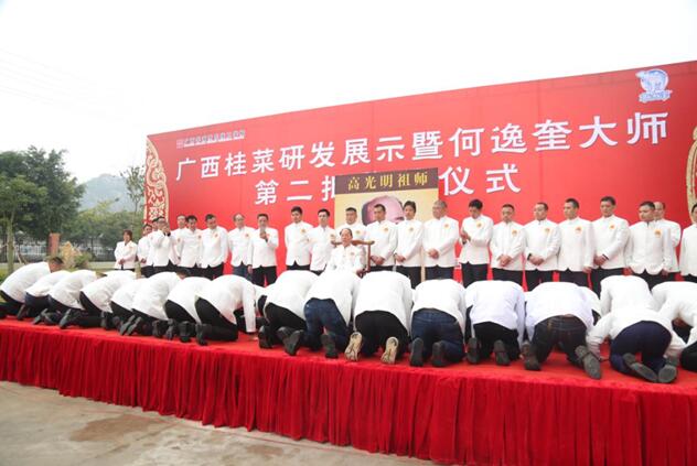 所以,當(dāng)一場重現(xiàn)中國古代拜師禮儀的廚師“收徒儀式”舉行時(shí),可以說震驚了廣西餐飲界。說震驚,是因?yàn)橹袊腼兇髱熓胀綍r(shí),徒兒需行跪拜禮,并敬清茶,遞拜師貼。確實(shí),中華飲食文化博大精深,需有授業(yè)者也需傳承者,這才是廚藝、廚技、廚德源遠(yuǎn)流長之道。