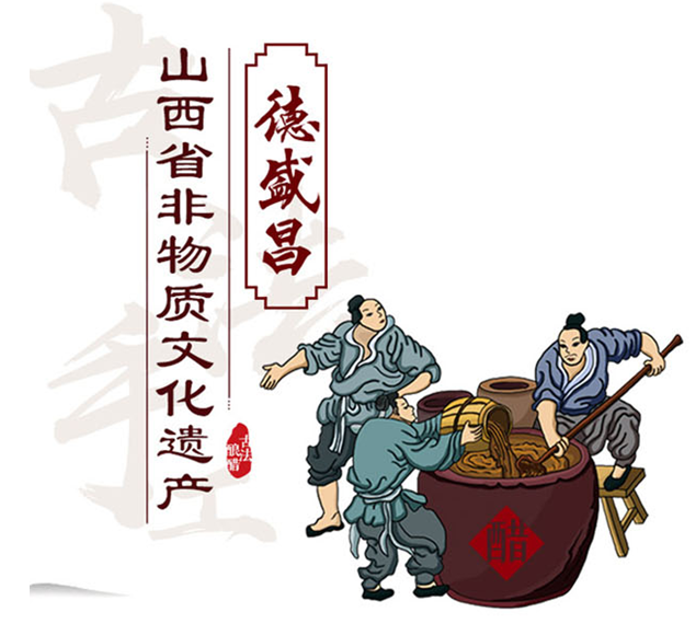 和順釀醋的歷史可以追溯到明代,明末清初,和順縣陽(yáng)光占地區(qū)作為東西來往的交通樞紐,商客往來頻繁。有周姓兄弟在此設(shè)立驛站,并在驛站內(nèi)設(shè)立酒坊和醋坊,首創(chuàng)“德盛昌”老陳醋古法釀制技藝,釀出的老陳醋色澤黑紅透亮,口感甘冽醇香。當(dāng)?shù)毓賳T對(duì)周氏兄弟為商為釀的品質(zhì)大為贊賞,有道“以德為釀,大成于皿,家業(yè)必得延昌”,并親自為醋坊題寫了【德盛昌】的匾額。2016年,“德盛昌”老陳醋古法釀制技藝被認(rèn)定為山西省非物質(zhì)文化遺產(chǎn),隨著歲月的變遷這份技藝愈加的煥發(fā)出新的光彩。