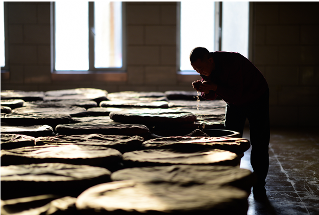 做醋的工藝復(fù)雜而精細(xì),每一個(gè)環(huán)節(jié)都浸透著對(duì)大自然慷慨恩典的敬畏與感激。蒸、酵、熏、淋、陳,山河醋業(yè)的釀醋師傅秉持一份匠心,晨起翻醅釀醋,嚴(yán)格遵守著老祖宗定下的規(guī)矩,在日復(fù)一日的辛勞后,終釀得一份醉人的酸香。