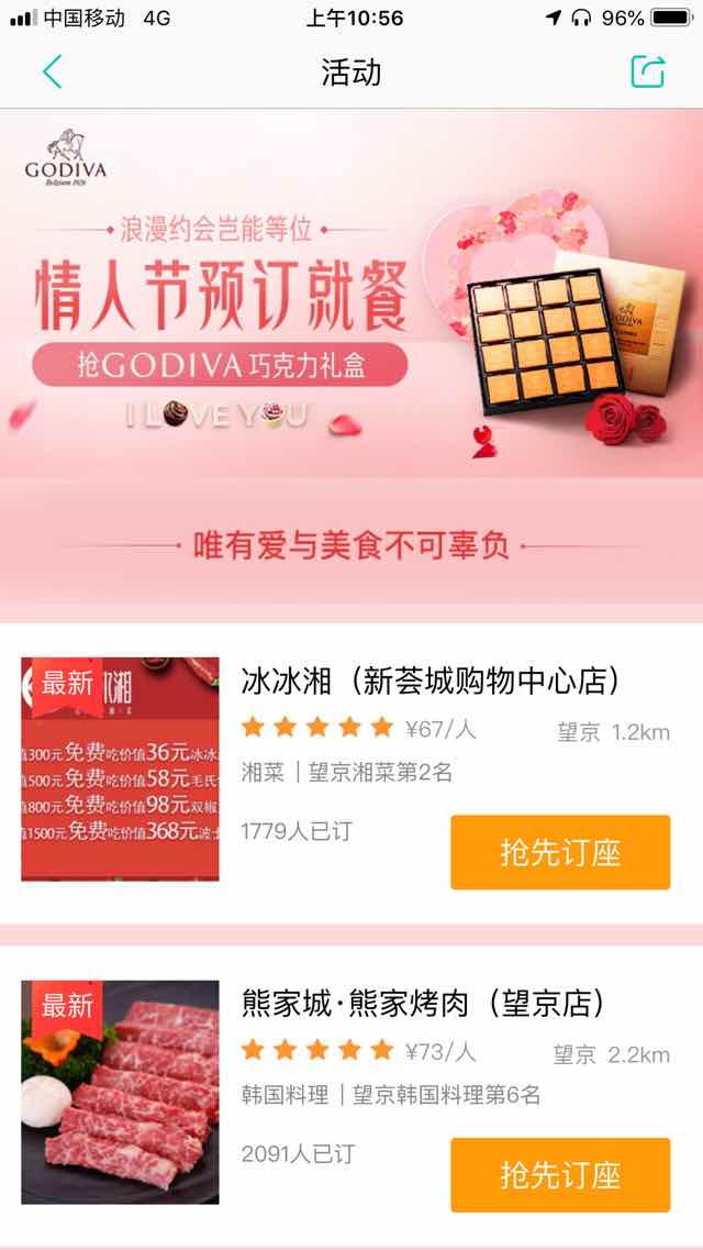 美團點評預訂業(yè)務相關(guān)負責人介紹,情人節(jié)餐廳在線上提前預訂可以輔助餐廳提前進行準備,也為營業(yè)餐廳增加曝光和導流。而對消費者而言,可以提前足不出戶便鎖定心儀的餐廳。而針對情人節(jié)消費高峰,美團點評精選了優(yōu)質(zhì)商家上線預訂業(yè)務,還推出了搶Godiva巧克力禮盒,預訂用餐低至八折等豐富的活動,為消費者提供更為優(yōu)質(zhì)豐富的就餐選擇。