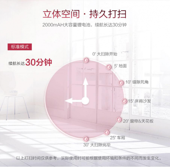 斐納TOMEFON TF-X50吸塵器擁有2000mAH大容量鋰電池,可為清潔工作提供源源不斷的動力。標準模式下,續(xù)航長達30分鐘,即便是大戶型的清掃,也完全不成問題。