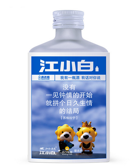 聯(lián)名款這么多,蘇格拉寧X江小白聯(lián)名款有什么特別之處?以內(nèi)容取勝或是這款聯(lián)名款殺出重圍的秘密武器。這款聯(lián)名款為“趁年輕 勇敢說(shuō)愛(ài)”系列,共包含6瓶小酒,每瓶小酒瓶身都有不同的為愛(ài)表白臺(tái)詞。
