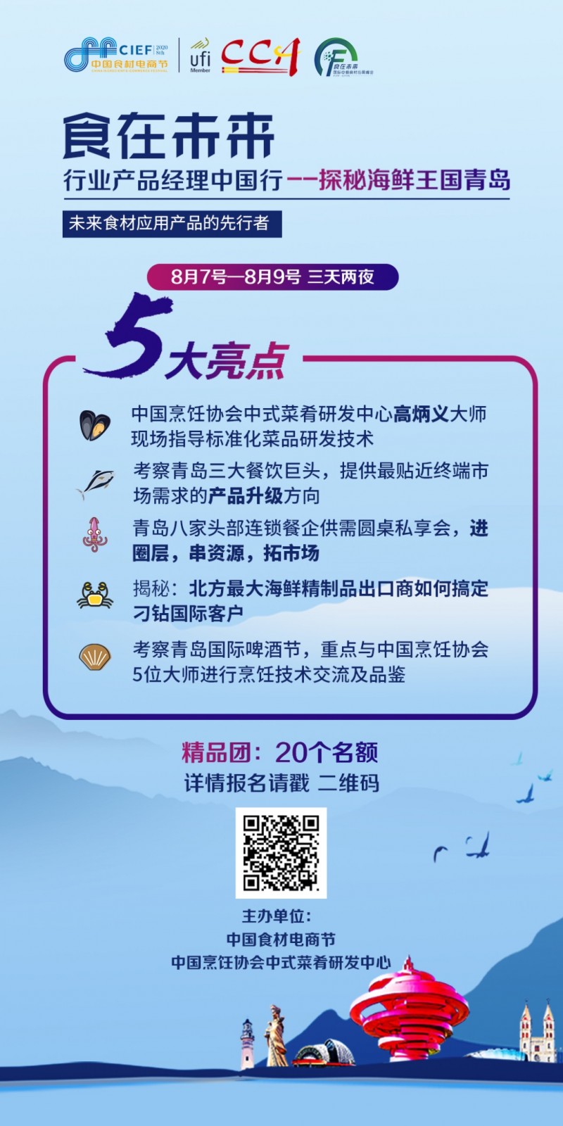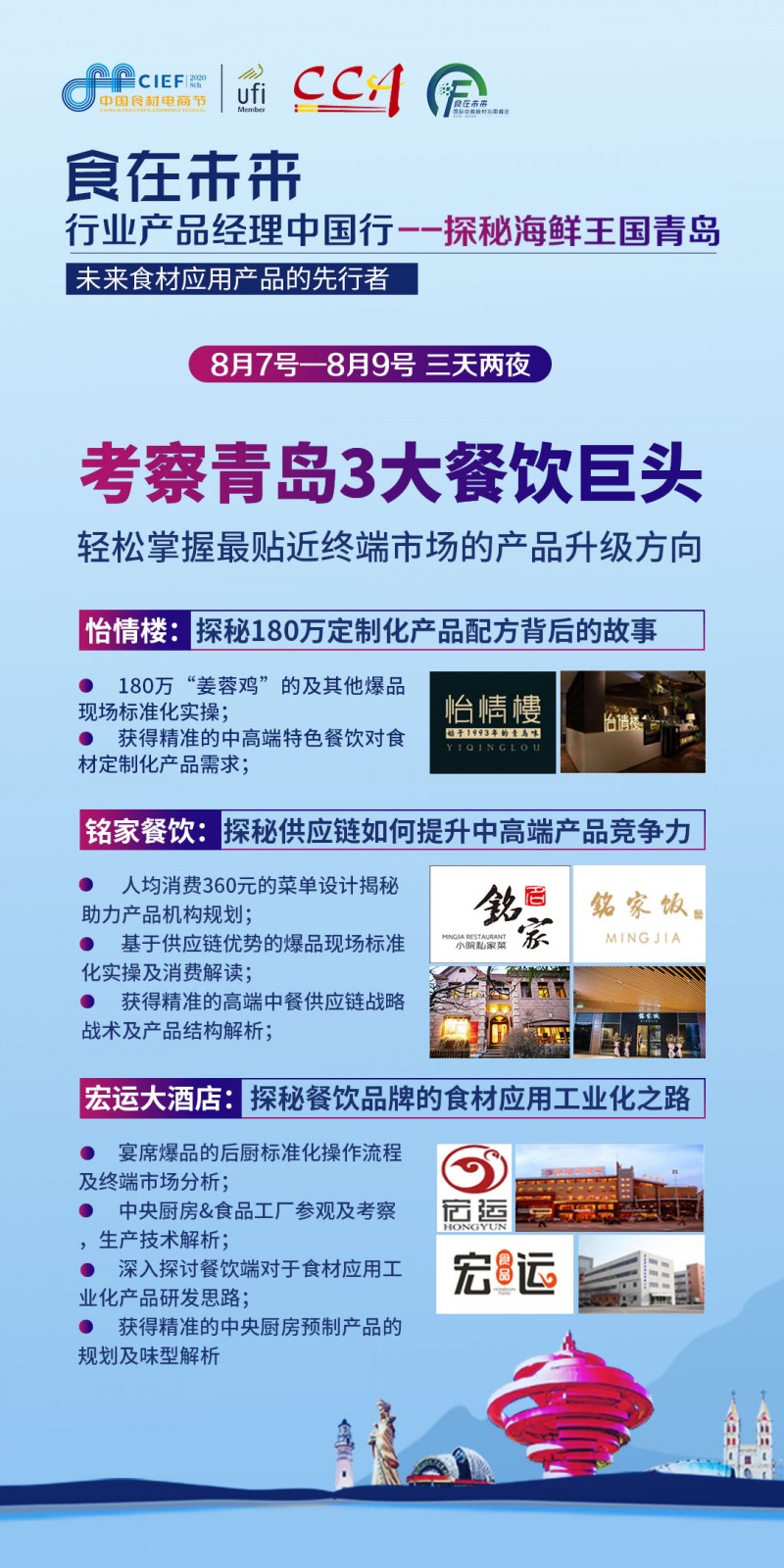 2019年8月7日至9日,由中烹?yún)f(xié)副會長、中烹?yún)f(xié)名廚委員會主席高炳義大師特邀帶領(lǐng)的“食在未來·行業(yè)產(chǎn)品經(jīng)理中國行-探秘海鮮王國青島”即將開拔!據(jù)悉,本次活動將深入考察青島宏運(yùn)酒店、銘家餐飲及怡情樓三大餐飲巨頭,中國烹飪協(xié)會中式菜肴研發(fā)中心研發(fā)基地及青島國際啤酒節(jié),并特邀青島11家餐飲頭部企業(yè)組織舉辦“供需圓桌私享會”等活動,旨在通過專業(yè)指導(dǎo),最貼近終端的研發(fā)方向,供需精準(zhǔn)對接多層次提升食材企業(yè)創(chuàng)新能力及競爭力。