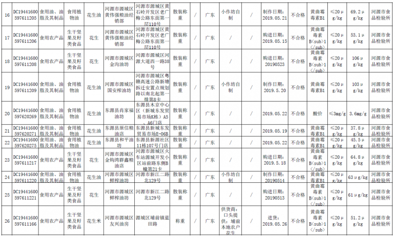 此次監(jiān)督抽檢17批次食用植物油黃曲霉毒素B1項(xiàng)目超過限量指標(biāo)、1批次食用植物油酸價(jià)項(xiàng)目超過限量指標(biāo)、8批次食用農(nóng)產(chǎn)品黃曲霉毒素B1項(xiàng)目超過限量指標(biāo)。