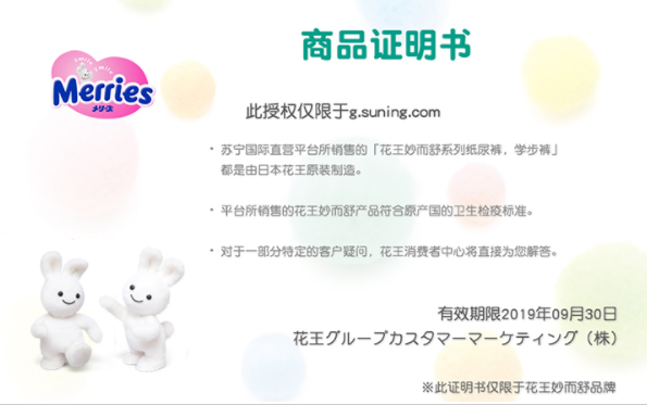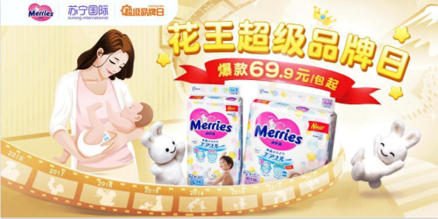 為了讓國內(nèi)寶媽們買到最正宗的日本花王產(chǎn)品,今年年初,Kao Group Customer Marketing Co.,Ltd.代表董事高級專務(wù)執(zhí)行官間宮秀樹先生一行到訪蘇寧總部,與蘇寧國際簽署Merries戰(zhàn)略合作備忘錄。818期間,雙方合作再深化,花王Merries蘇寧國際直營海外旗艦店正式上線。數(shù)據(jù)顯示,花王Merries蘇寧國際直營海外旗艦店上線當(dāng)天,花王紙尿褲毫無懸念榮登當(dāng)日紙尿褲銷售top1品牌。
