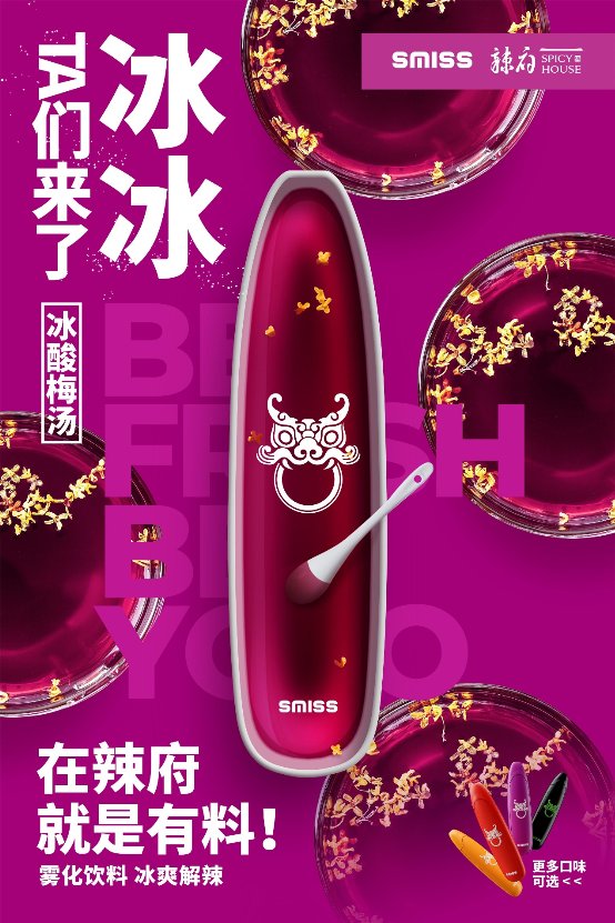 聯名款霧化飲品將在辣府全國各家直營門店上線。國慶期間帶親朋好友去辣府打卡,還能發(fā)現更多奇妙的聯名驚喜!辣府聯手SMISS,雙“潮”匯聚,玩出不一樣的新鮮感!