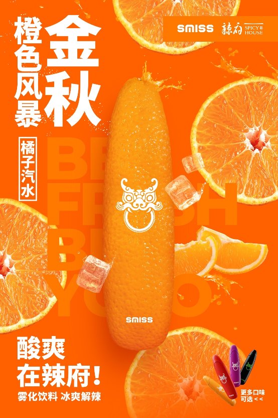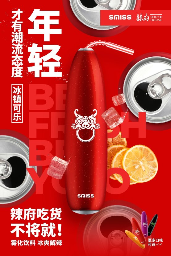 SMISS小企鵝是什么?它是SMISS為辣府特別定制的聯名款霧化飲品。它的口味花樣繁多,為了出席辣府的美食盛宴,SMISS小企鵝從15種口味中精挑細選出4款最符合火鍋主題的煙彈口味——冰酸梅湯、橘子汽水、冰鎮(zhèn)可樂和能量牛飲。