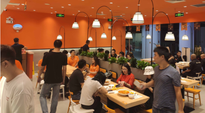 過去餐飲消費,集中于商務(wù)應(yīng)酬和大家庭聚會,所以餐廳為此匹配的,多是大桌、包廂,以保證客人的私密性;但如今的餐飲消費,則以休閑聚會為核心場景,情侶、朋友、閨蜜……所以餐廳提供的位置變成了開放式小桌,以2-4人為主。“魚你在一起”下飯酸菜魚打造輕快餐就餐模式,消費者排隊點餐,然后等待叫號機響應(yīng)便可前去取餐,開放式小桌滿足了顧客的位置需求,因此也得到消費者們的認可,成為熱門的酸菜魚聚餐地。
