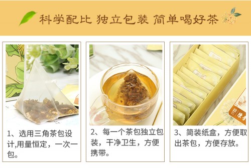花茶系列則是經(jīng)過專業(yè)人員科學配比原料,鎖住營養(yǎng)更好吸收,所以便選用三角茶包設計,用量恒定,一次一包。每一個茶包獨立包裝干凈衛(wèi)生,方便攜帶。簡裝紙盒的設計,干凈衛(wèi)生易存放。