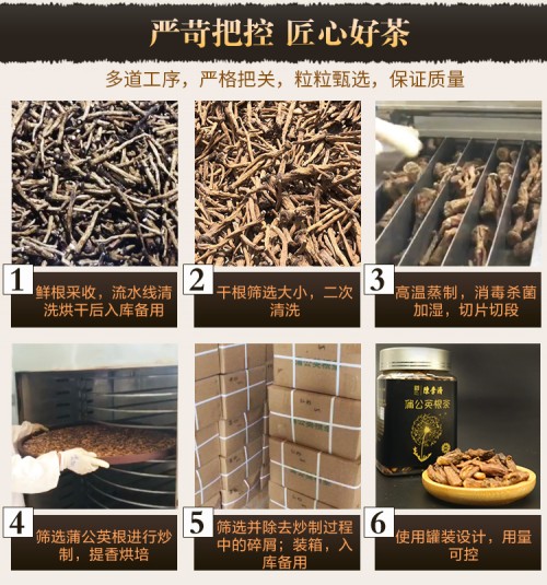 陳李濟采收長白山新鮮蒲公英根,設置工廠就地取材加工,保證營養(yǎng)不流失。市面上很多蒲公英根切片后營養(yǎng)流失嚴重,所以陳李濟將蒲公英根做切段處理,受熱均勻,保留營養(yǎng),而且更易保存。從篩選、清洗—蒸制、切段—炒制、提香烘焙等多道工序都嚴格把關,粒粒甄選,保證產(chǎn)品質量。