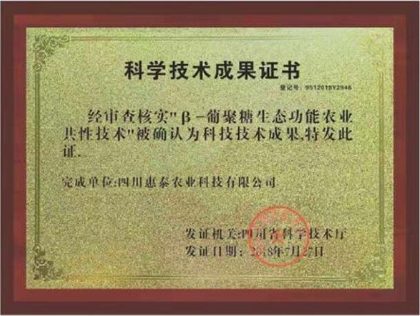 四川惠泰農(nóng)業(yè)科技有限公司獲得四川省科學(xué)技術(shù)廳頒發(fā)的證書