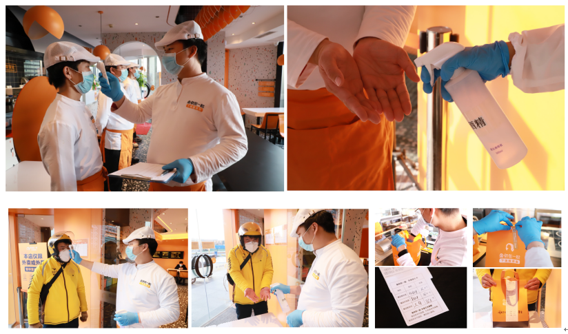 在線下店內(nèi),每名員工要嚴格進行體溫監(jiān)測、佩戴口罩,門店也要每天定時根據(jù)防疫要求進行消毒,進而從源頭保障員工和菜品的安全。同時,為保證食客安全,還要做好外賣小哥的健康追蹤,嚴測外賣小哥體溫。另外,每一份外賣單上都會有“外賣安心卡”,提供無接觸配送,食客可根據(jù)自身情況進行選擇。