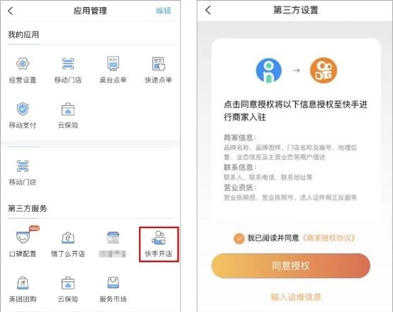 第一步:登錄掌上客如云APP-商家后臺(tái)應(yīng)用管理-第三方服務(wù)-快手開店