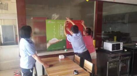 執(zhí)法人員發(fā)放文明餐桌宣傳海報(bào)