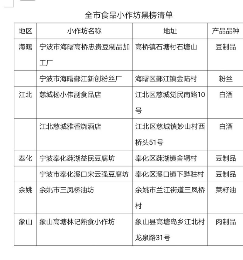寧波8家食品小作坊入“黑榜”(央廣網發(fā) 圖片來自官方通稿截圖)