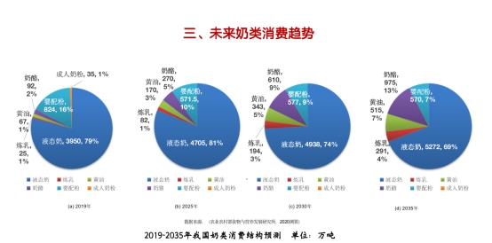 數(shù)據(jù)顯示:2019年,我國奶類消費液態(tài)奶占72%,嬰配粉占22%,奶酪和黃油占2%。但是從2000年至2019年我國奶酪和黃油的總銷量來看,奶酪消費年均增長率19.7%,黃油消費年均增長率16.9%。程廣燕表示,預計在未來15年的發(fā)展中,奶酪、黃油消費都將會有大幅的增長空間。但隨著人口出生率下降,嬰配粉市場規(guī)模將大幅下降,到2035年將比目前減少百分之三十。