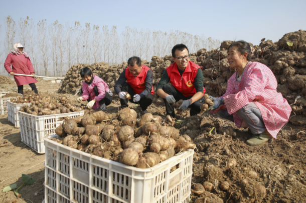 初冬時(shí)節(jié),江蘇省連云港市贛榆區(qū)城頭鎮(zhèn)仙墩村的芋頭種植基地里一片熱火朝天的繁忙景象,黨員志愿者正與種植戶(hù)一起分揀芋頭準(zhǔn)備裝車(chē)外銷(xiāo)。該村今年種植的2000畝芋頭大豐收,畝產(chǎn)量3500公斤,均畝效益在1.2萬(wàn)元。