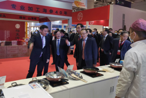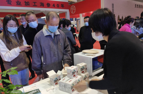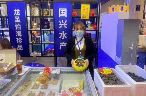 同樣獲得好成績(jī)的還有山高驊達(dá)園區(qū)內(nèi)的煙臺(tái)寓圣海珍品有限公司、煙臺(tái)國(guó)興水產(chǎn)有限公司。據(jù)寓圣海珍品負(fù)責(zé)人介紹,他們的參源來(lái)自海上仙山——砣磯島,利用八角灣歷史傳承的古方海參加工技藝,嚴(yán)格按照SC流程生產(chǎn),堅(jiān)持做品質(zhì)海參、品牌海參,產(chǎn)品遠(yuǎn)銷海外,研發(fā)的港式湯品和佛跳墻常年供應(yīng)港澳地區(qū)星級(jí)酒店。而國(guó)興水產(chǎn)的產(chǎn)品在展會(huì)期間銷量一路領(lǐng)先,同樣受到消費(fèi)者和訂貨商們的追捧。
