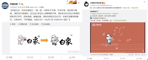 相關數據顯示:“新白象”在抖音平臺共攬獲2271萬播放量,點贊人數達12萬,生活類、美食類、親子類KOL紛紛為白象食品送上祝福;微博端,三聯(lián)生活周刊、中國日報、半島晨報等多家媒體及小野妹子愛吐槽、瘋狂的創(chuàng)意廣告等大V博主共同造勢,#全新白象,幸福有樣#、#新小象,開啟新想象#相關話題討論火熱,“新白象”曝光量突破2700萬。