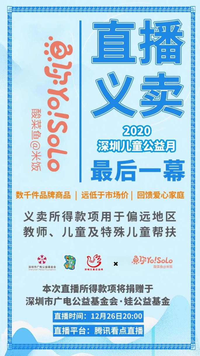 此次活動,魚你Yo!Solo聯(lián)手深圳市廣電公益基金會,參與義賣直播,獨家捐贈3萬酸菜魚愛心套餐,獻愛公益,讓每一份小小的酸菜魚都帶上助力公益的印記。本次兒童公益月義賣直播籌集善款將由深圳市廣電公益基金會娃基金平臺管理并全部捐贈,用于娃公益基金的公益幫扶項目,為特殊兒童、偏遠地區(qū)兒童及教師提供知識傳播及物資支持。。
