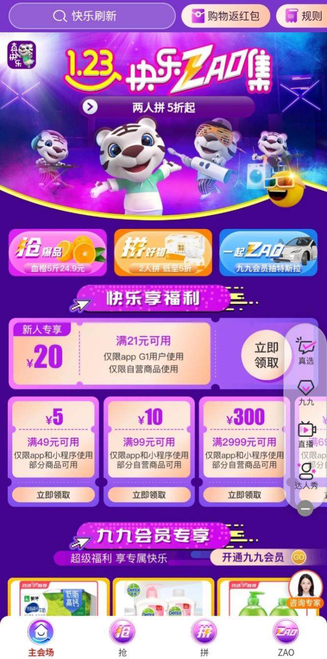 1月23日—2月4日,“真快樂”APP開啟“快樂ZAO集”超級(jí)年貨節(jié),全場(chǎng)品牌酒水飲料集體放價(jià),升級(jí)九九會(huì)員更超值。市場(chǎng)價(jià)499元的劍南春水晶劍52度白酒,九九會(huì)員只需389元;牛欄山濃香型36度白酒,6瓶整箱裝會(huì)員優(yōu)惠只要729元,整整比市場(chǎng)價(jià)少了170元!軒尼詩新點(diǎn)干邑白蘭地700ml單支盒裝真選價(jià)269元,享受會(huì)員專屬優(yōu)惠后僅239元。下面就跟隨小編一起看看,九九會(huì)員到底是怎么薅羊毛的?