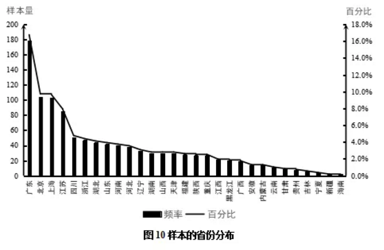藻類產(chǎn)業(yè)體系產(chǎn)業(yè)經(jīng)濟研究室于2019年11月-12月開展了主題為“消費者關(guān)于海帶產(chǎn)品的價值需求、屬性偏好及需求結(jié)構(gòu)”的、較大規(guī)模的社會問卷調(diào)查。此次調(diào)查在被社會科學研究者廣泛使用的網(wǎng)絡(luò)問卷調(diào)查平臺——問卷星上-展開。本次調(diào)查共收集問卷1085份,其中有18個被調(diào)查者明顯異常,被剔除樣本,最終的有效樣本為1067份,有效樣本回收率為98.3%。本調(diào)查樣本主要覆蓋到全國29個省、自治區(qū)、直轄市,樣本的省份分布如圖10所示。