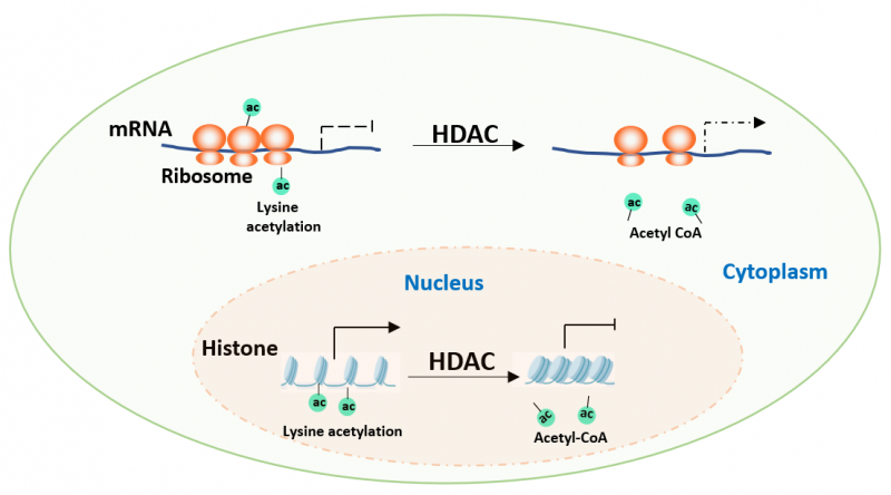 圖1. HDAC對組蛋白以及核糖體蛋白乙?;揎椀恼{(diào)控