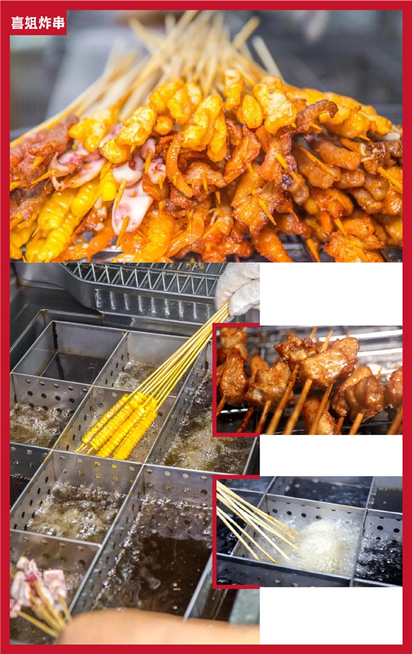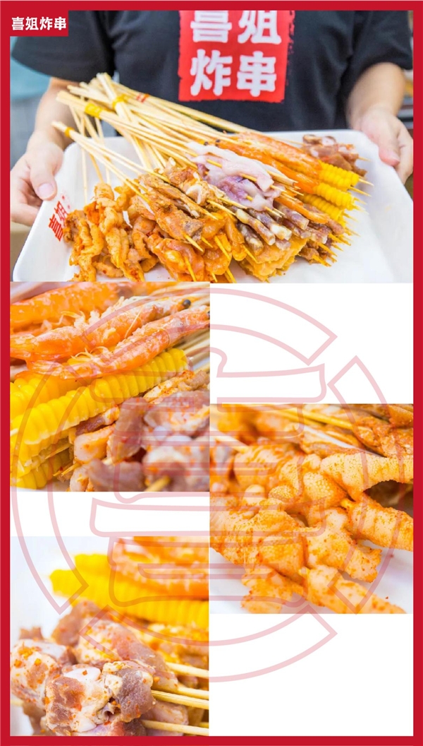 喜姐的好口味是品牌能高速發(fā)展的核心,秘訣就在于?以類燒烤的方式重做炸串品類?。