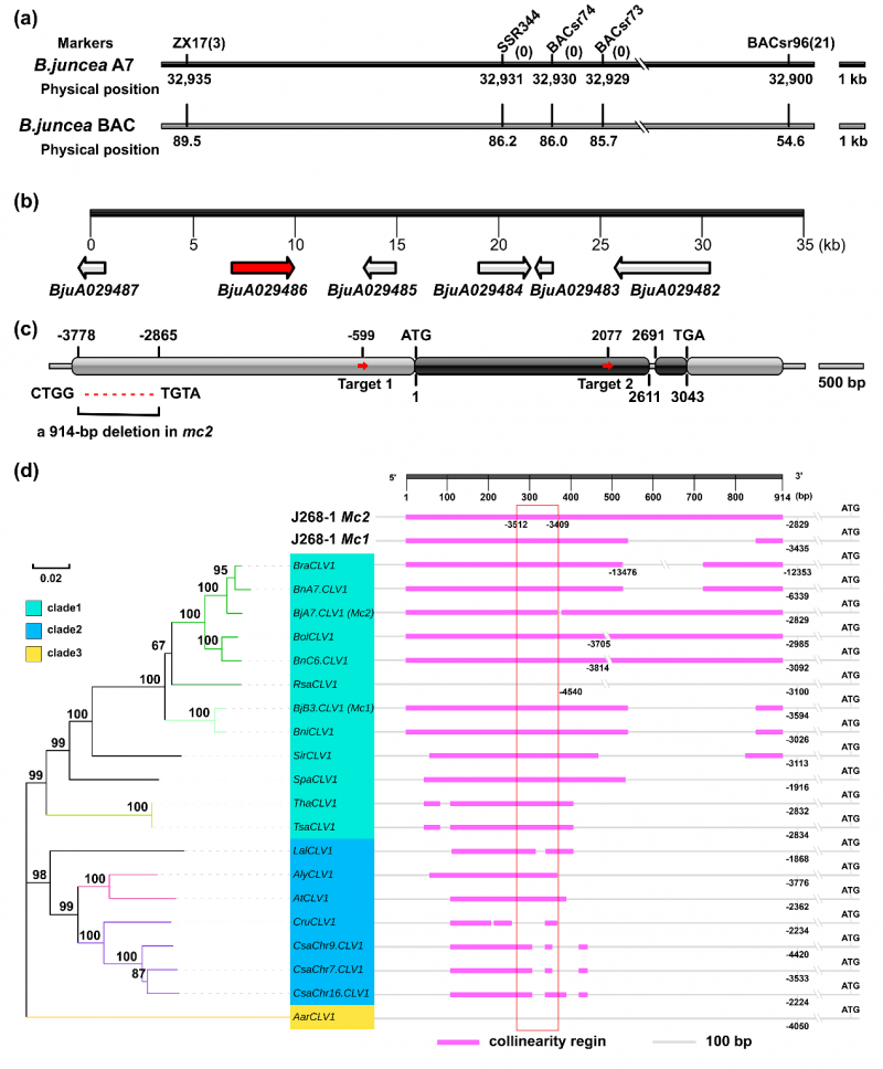 通過對十字花科物種中CLV1同源基因的啟動子區(qū)域進行共線性分析,發(fā)現(xiàn) mc2啟動子的914-bp缺失序列在這些同源基因的啟動子區(qū)域十分保守。而且,啟動子僅缺失這段共線性保守序列的BjB3.CLV1基因也僅影響該基因在維持CMM穩(wěn)態(tài)的功能。