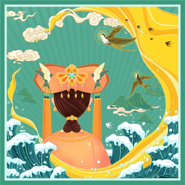 白云飄飄,玄鳥翩翩,黃河如織帶,蜿蜒而成了梅花窗的形狀,而格格美麗的背影又韻味十足,把中國的傳統(tǒng)文化與現(xiàn)代人的靈動充分融合,為傳統(tǒng)文化注入時(shí)尚創(chuàng)意,力求讓更多愛美的年輕人感受到國潮的無盡魅力,傳遞真正的國貨力量!