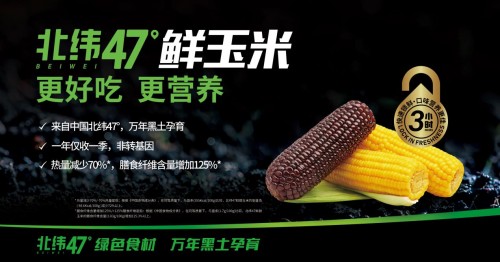 “北緯47度”鮮玉米包括鮮甜玉米、鮮糯玉米、黑珍珠鮮玉米三款產(chǎn)品,產(chǎn)地在世界三大黑土帶之一的黑龍江松嫩平原。這里冬夏溫差超過70度,年均日照超過2600小時(shí),全年優(yōu)質(zhì)的純凈空氣,天然弱堿性蘇打水,為“北緯47度”鮮玉米供給了絕佳的生長(zhǎng)環(huán)境。