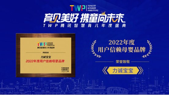 力誠寶寶斬獲TWP騰訊智慧育兒年度盛典“2022年度用戶信賴母嬰品牌”專項致敬