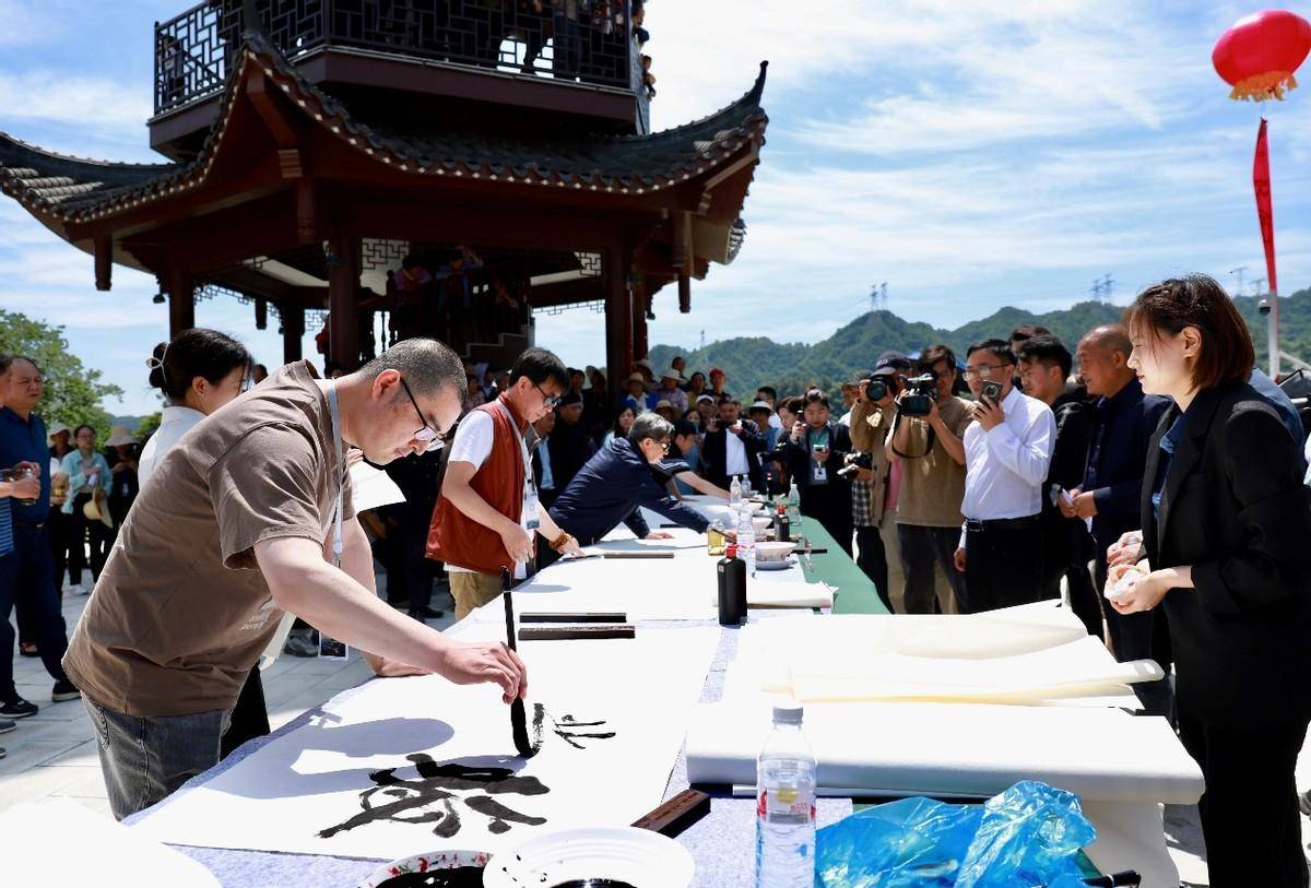 在活動現(xiàn)場,羅美富、郭子良、姚紹德、陳海兵、呂幼平等書畫名家現(xiàn)場揮毫潑墨,為巴東寫下了“向陽而生”“巴峽奇觀”“飲長江水 品巴東紅”等書法作品。